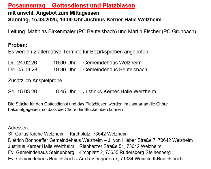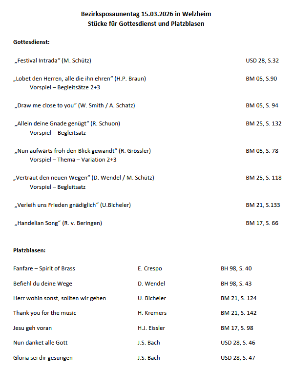 Termine zum Bezirksposaunentag am 14. und 15.03.2026 in